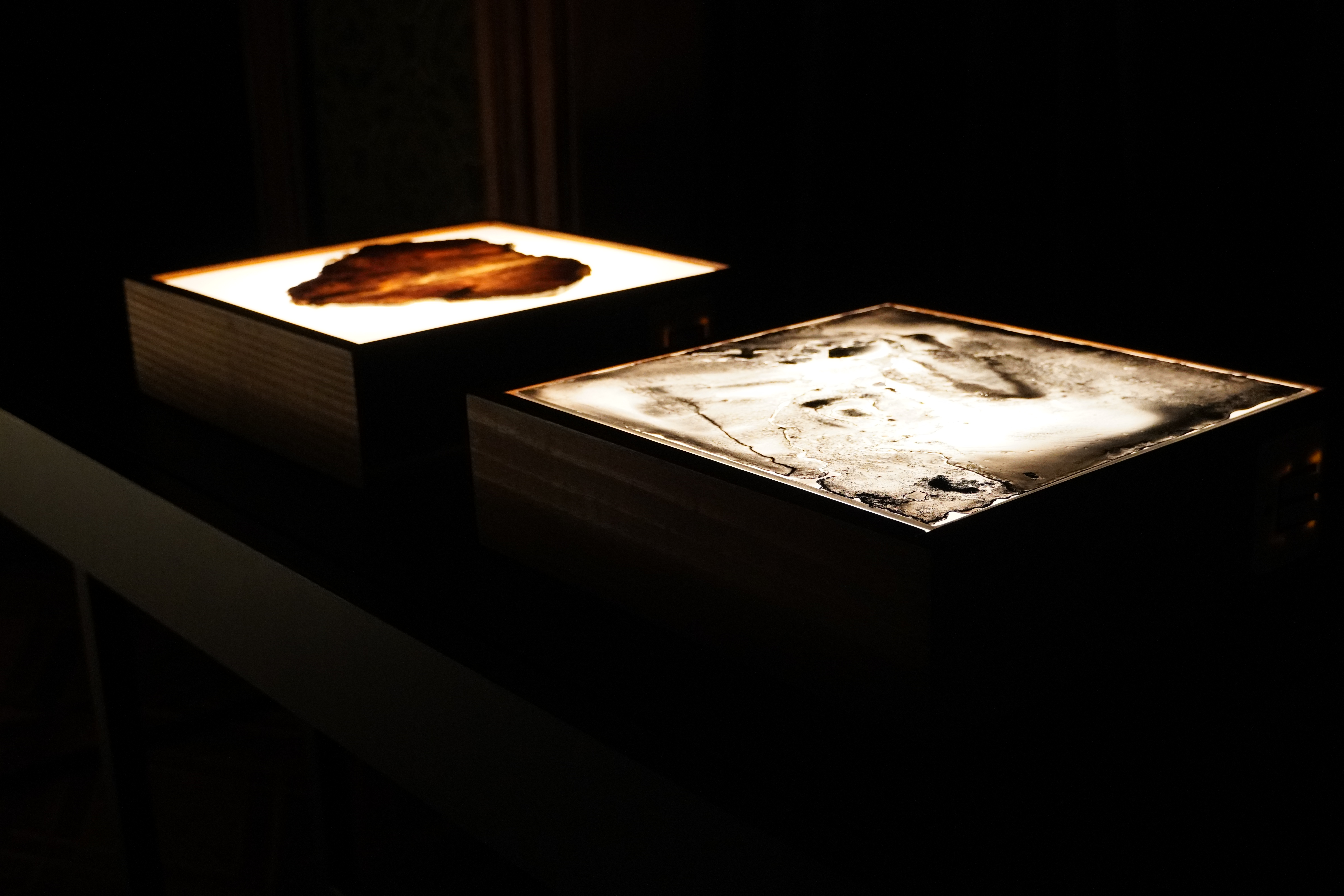 Grafite e nanquim sobre vidro e mesa de luz